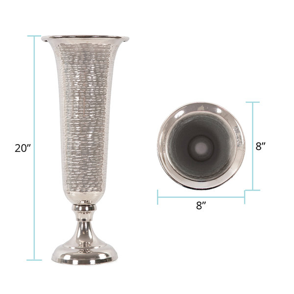 The Torvi collection is hand-crafted and finished by expert artisans. The simple modern dash pattern also creates a hammered pattern on the inside, that adds to the versatility and beauty of these designs. Each piece can easily stand alone as a decorative accent or be grouped together to show the contrast of dark and light elements. Whether it is filled with beautiful seasonal floral or left as is, this tall flared trumpet vase will add just the right touch of modern yet classic flare.