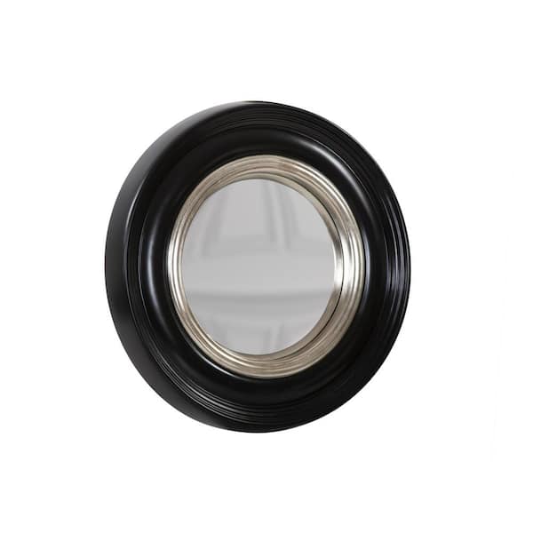 Small Round Black Matte Finish With A Silver Inset Art Deco Mirror (14 in. H x 14 in. W)