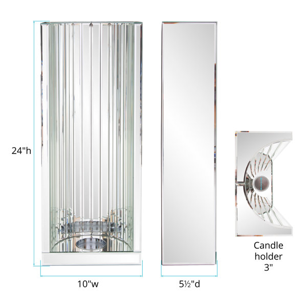 This gorgeous wall sconce features a faceted mirror design that will capture the light from your candle and reflect it in the most dazzling way. Fits up to a 3" pillar candle (not included) On its own or in multiples, the sconce is a perfect accent piece for an entryway, bathroom, bedroom or any room in your home. D-rings are affixed to the back of the piece so it is ready to hang right out of the box!