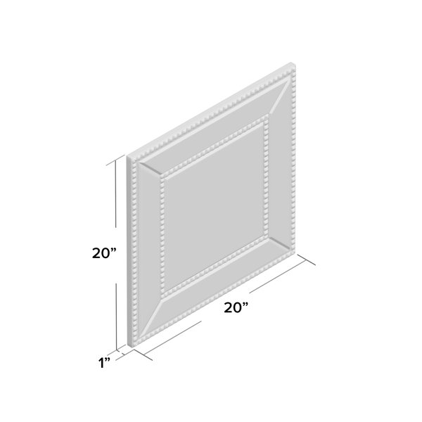 This Griswalda Mirrored Frame Wall Mirror features a square mirrored frame that offers the most amazing reflections of light and color. Each mirrored panel has a small bevel adding to its beauty and style. The piece is then trimmed in a beaded glass border. D-rings are affixed to the back of the mirror so it is ready to hang right out of the box in either a square or diamond orientation! Alone or in multiples, this mirror will add a glamorous touch to any room in your home.