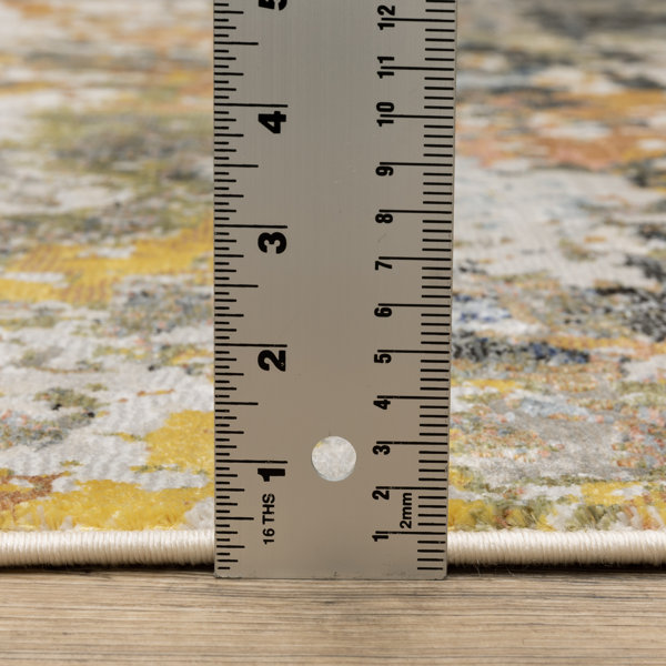 This multicolored indoor area rug features a modern abstract pattern in mottled hues of beige, gray, and green for a look that works with a variety of styles including rustic, traditional, and industrial. Power-loomed using stain-resistant polyester, this rug has a pile height of 0.31". This allows for multiple placement options in your home like your living room, entryway, kitchen, or sunroom. It's also safe to place on heated floors. We recommend getting a rug pad to fit beneath this rug to keep it from shifting underfoot.