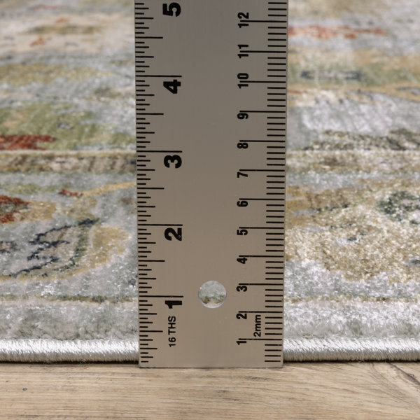 Floral and oriental pattern blends with traditional design in shades of blue, grey, green, rust, gold, ivory, and beige for a timeless and elegant look.