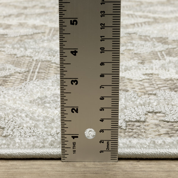 Neutral chic: Krishi celebrates global patterns in on-trend neutral tones—from ivory to warm sand and cool gray. Power-loomed from 100% polypropylene, it features textured and multi-tonal lustrous yarn. The multi-level construction includes a plush cut pile, textured loop, and flatwoven areas, creating a visually intriguing and tactile appeal for any decor.