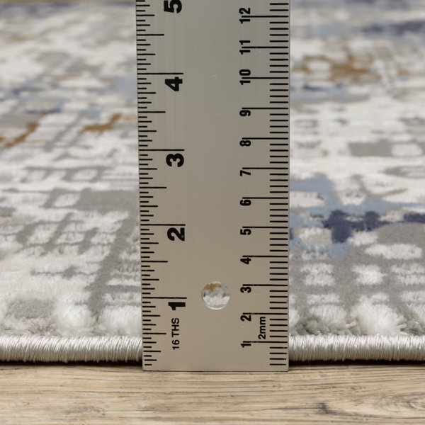 This 8' x 11' blue ivory gray brown beige and light blue abstract power loom stain-resistant area rug, is a great way to add warmth to a room. This rectangle-shaped rug features an abstract design in blue ivory gray brown beige and light blue to give it visual interest. A classic shape marries with good looking design for your space Ideal for spaces with kids and pets, this rug is stain-resistant to help repel stains and spilled liquids. Area Rugs help to give warmth and a sense of home to your space. 1" H x 94.49" W x 129.92" D