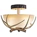 Bring a little nature indoors with the Lodge collection. Its wild look is warm and inviting yet interesting and stylish. The fixtures are designed to replicate the textural elements of pine tree bark and wood. The sculpted antlers are realistically detailed. French scavo glass shades complete the look. Everything combined makes this collection a great choice for a rustic vacation lodge, cabin or a suburban home. It will complement a variety of home styles: anywhere you want to bring in an element of nature. This semi flush mount ceiling light is ideal for hallway, living room, bedroom, Entryway or utility room. Assembly Required: Yes / Back Plate Height: 5.50 / Back Plate Width: 5.50 / Canopy Diameter: 7 / Bulb Shape: A19 / Dimmable: Yes / Shade Included: Yes.