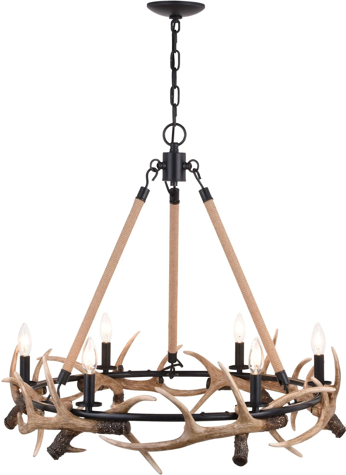 Vaxcel Lighting H0261 Breckenridge 6 Light 31"W Antler Ring - Grey