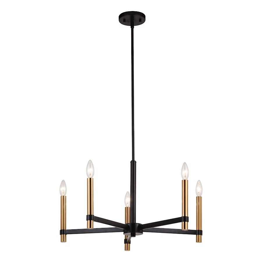 Vaxcel Damen 5 Light 25" Chandelier, Matte Black/Natural Brass - H0267
