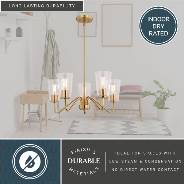 Uses 5 x 60 watt E26 medium base bulbs (not included); led compatible