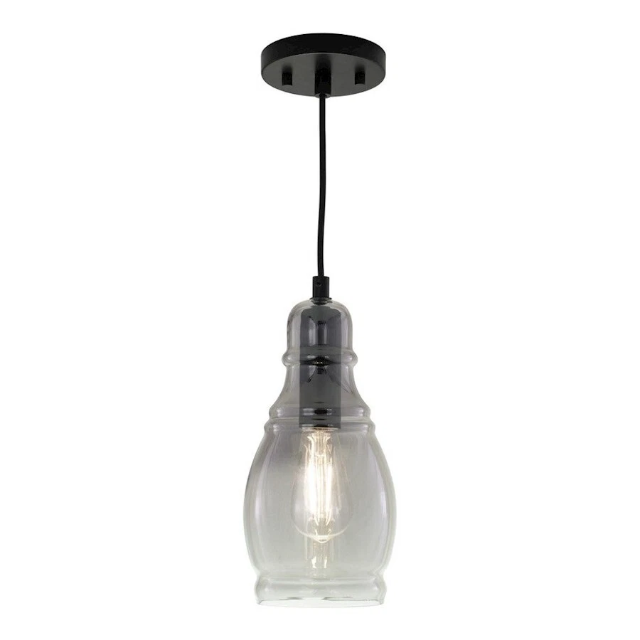 Vaxcel Millie 11.75" H Mini Pendant, Matte Black/Smoke Glass - P0377
