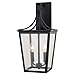 Add some classic charm with the matte black Cottage Grove outdoor wall light. Its spotlighting curved tented lines at the top and clear glass tapered panes add a touch of traditional crafted elegance. Ideal for your homes front entrance, garage, or back entryway.