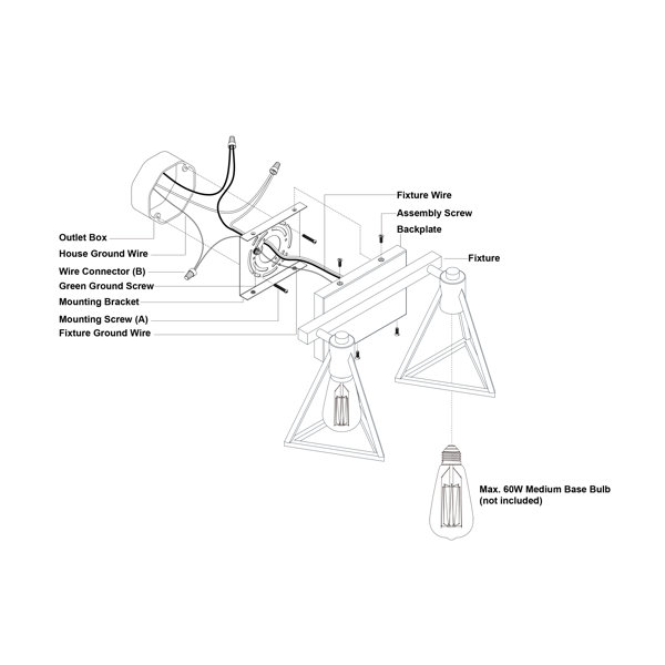 Uses 60 watt e26 medium base bulbs (not included); LED compatible