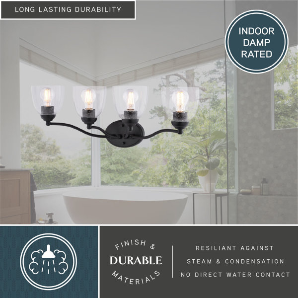 Transform your bathroom's ambiance with the Koepp 3-light vanity, a perfect blend of classic design and modern sophistication. The matte black finish provides a timeless feel, while the clear seeded glass shades add a touch of vintage charm, diffusing a warm, inviting light. This wall light reimagines traditional style with thoughtfully updated details, including classic sphere accents and graceful tulip glass shades. Damp-rated for lasting performance, the Koepp vanity is designed to withstand the moisture of bathroom environments. Enhance your daily routine with a fixture that seamlessly bridges traditional charm and modern functionality.