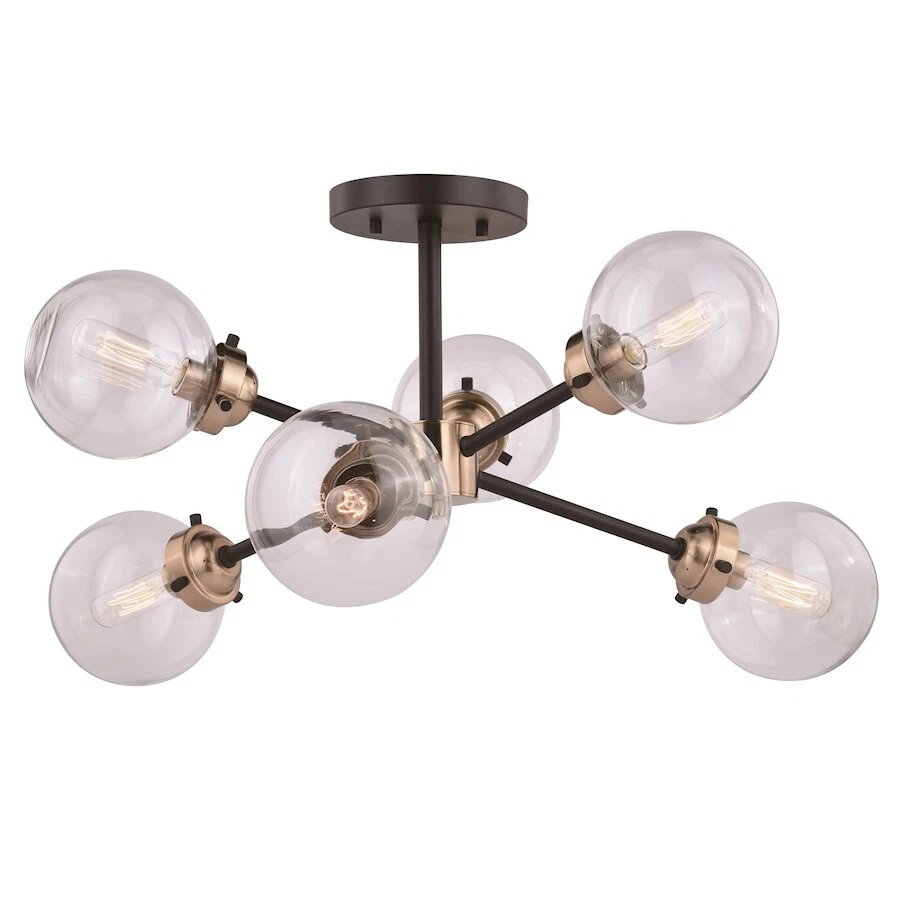 Vaxcel Orbit 6 Light 25" Semi-Flush Mount, Oil Rubbed Bronze/Muted Brass - C0193