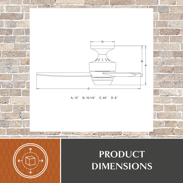 This 44'' propeller-style ceiling fan is a functional and cooling addition to your medium-sized rooms. Made from metal, it features three engineered wood blades with a 12-degree pitch for optimal airflow. With six speeds and a reversible DC motor, this fan provides customizable comfort throughout the year, letting you create the ideal breeze. An integrated LED light kit includes a frosted opal glass shade that casts a warm, inviting glow. Plus, it comes with a remote control for easy operation, and the fan is designed for residential use with a 120-volt power supply.