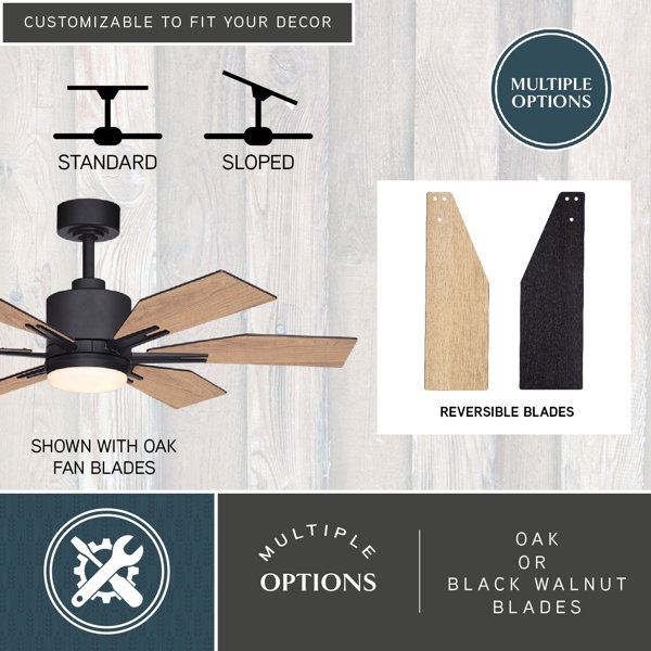 This mod ceiling fan cools your space with a sleek, streamlined look and convenient remote control. It's crafted from metal in a neutral finish with a simple flush mount canopy that supports a circular motor that has three speeds and reversible airflow. The propeller design features six engineered wood blades, and a light kit with an included, integrated LED that provides downlight. We love the minimalist circular shade made of frosted glass that adds an ambient glow. Our favorites? It's dimmable, it comes with a remote control, and it suits medium-sized rooms up to 12' x 14'.