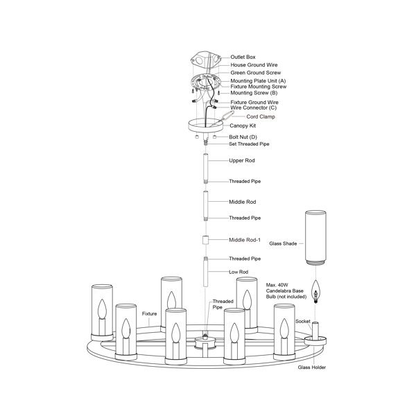Uses 40 watt E12 candelabra base bulbs (not included); led compatible