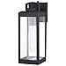 The Kinzie outdoor porch lantern from VAXCEL is a classic and modern lighting fixture perfect for all your outdoor spaces! Elongated, slim, clear glass panels frame the Kinzie for a clean, contemporary feel. Finished in textured black, this wall lantern creates a bold but understated look perfect for highlighting your space. A built-in dusk to dawn photocell automatically turns the light on at dusk and turns it off at dawn, saving energy during daylight hours. This outdoor wall light is ideal for your covered porch, entryway, garage, or any other area of your home. This wall sconce is compatible with LED bulbs.