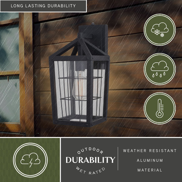 Clear glass panels offer maximum light output for your outdoor spaces. For added security, this wall mount light fixture has a built-in photocell sensor that automatically turns the light on at dusk and off at dawn, saving you energy during daylight hours. Made of weather-resistant materials that can withstand rain, sleet, and snow providing long-lasting durability for the safety of your family and home. This sconce is perfect for a wide variety of applications including your front door, porch, patio, garage, barn, entryway, and more!