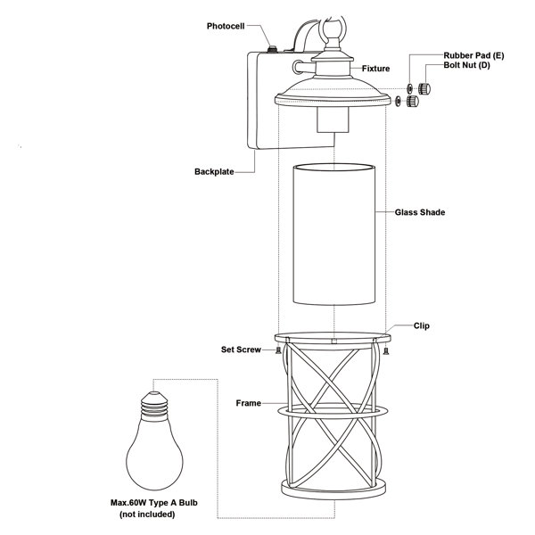 Introducing a modern take on a traditional light design: This 1-light lantern-style outdoor fixture pulls just the right amount of “old world look” and casts ambient light on your porch, deck, or entryway. The square backplate, curved arm, hook, and fixture are made from weather-resistant, powder-coated steel in a matte black hue. Slim black bands crisscross around the cylindrical seeded glass shade, drawing the eye up and around. We love the convenient dust-to-dawn feature, which means the light comes on and goes off as the sun sets and rises. The bulb is sold separately and some assembly is required.