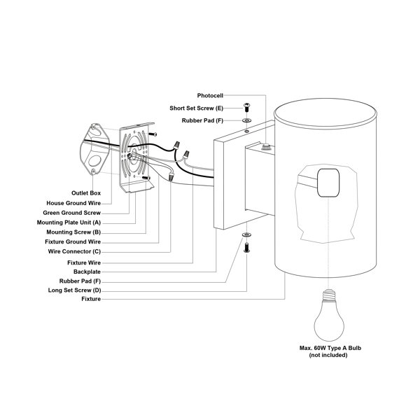 Dusk to dawn photo cell automatically turns fixture on in the dark and off in the light for added safety and security, saving energy during daylight hours