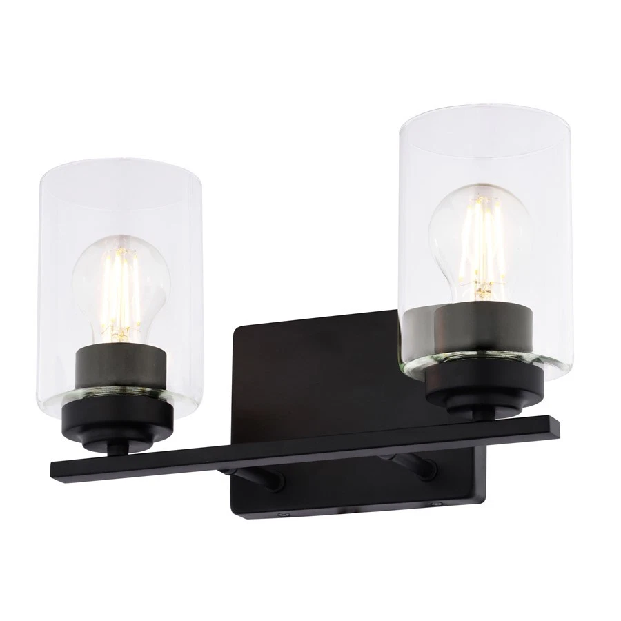 Vaxcel Park Ridge 13"W 2 Light Vanity, Matte Black/Clear - W0525