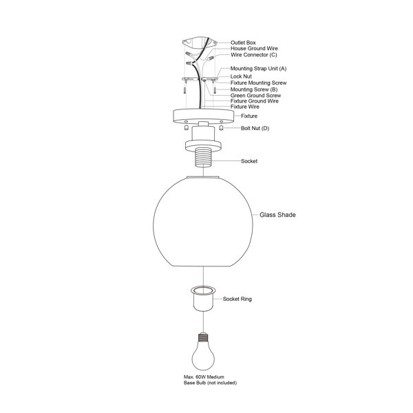 Uses 1 x 60 watt E26 medium base bulb (not included); LED compatible