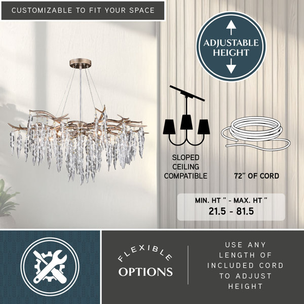This 5-light chandelier makes a statement whether it finds a home in your living area or in your entryway. Crafted from steel with an eye-catching silver mist finish, it has a branch-inspired silhouette for a hint of rustic charm, while glass strands made from clear crystal cascade from the branches to resemble icicles for a glam look we love. Five G9 bi-pin bulbs (not included) cast an ambient glow that gets reflected by the crystal accents. This chandelier hangs with the help of a height-adjustable rod and angled support wires, and it's also compatible with sloped ceilings.
