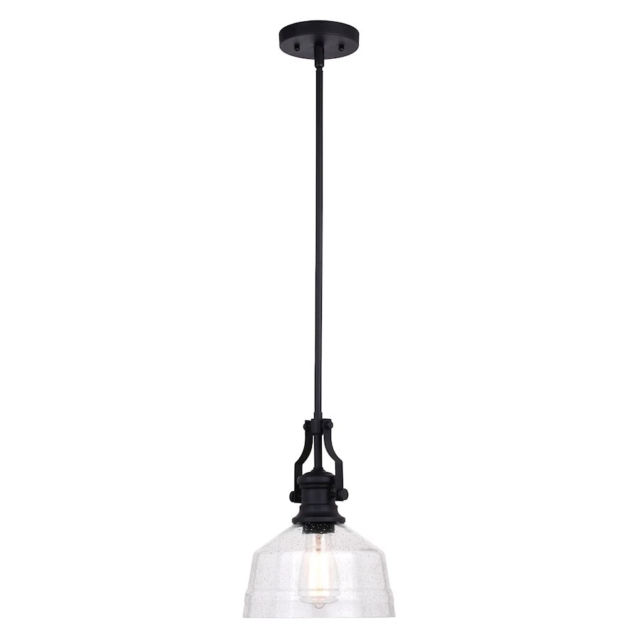 Vaxcel Beloit 1 Light 9" Mini Pendant, Matte Black/Clear Seeded - P0357