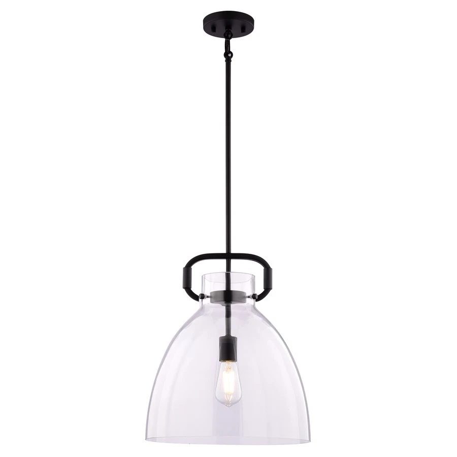 Vaxcel Madrona 1 Light 14"W Pendant, Black/Clear Glass - P0432