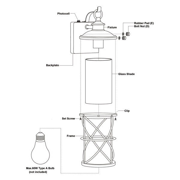 Introducing a modern take on a traditional light design: This 1-light lantern-style outdoor fixture pulls just the right amount of “old world look” and casts ambient light on your porch, deck, or entryway. The square backplate, curved arm, hook, and fixture are made from weather-resistant, powder-coated steel in a matte black hue. Slim black bands crisscross around the cylindrical seeded glass shade, drawing the eye up and around. We love the convenient dust-to-dawn feature, which means the light comes on and goes off as the sun sets and rises. The bulb is sold separately and some assembly is required.