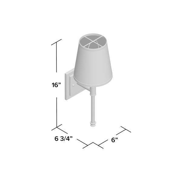 Give your morning routine a boost of brightness with this traditional 1-light bath sconce. Perfect for damp locations, this metal fixture features a square backplate for a sleek look, and a straight arm that supports one candelabra-style bulb up to 60W (not included). The satin nickel finish gives it classic appeal, while its white fabric shade rounds out this design. It can be hung in an upward- or downward-facing direction in your master suite or guest room. Plus, it's compatible with a dimmer, so you can set the lighting mood to your liking.