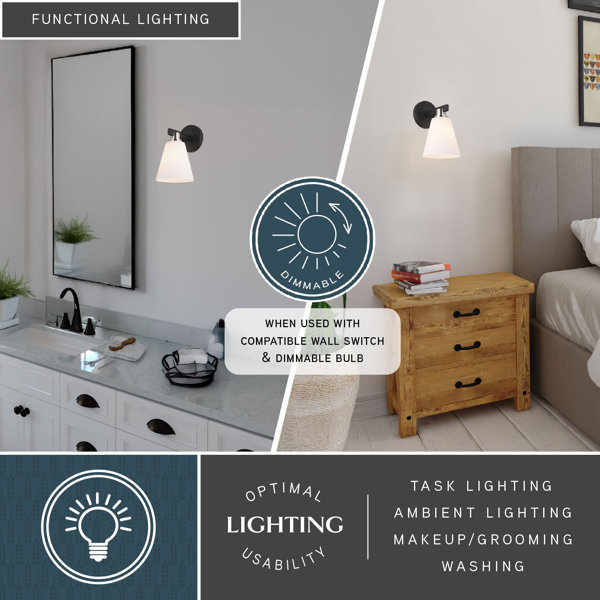 Elegance is exemplified in this collection called Vermont. A simple line of matte black metal acts as a striking backdrop to the etched white glass shade. This generously sized shape is met with a hint of satin nickel for just the right amount of sheen. Add this understated, but beautiful example of elegance to any trendy hallway, bedroom, or bath.