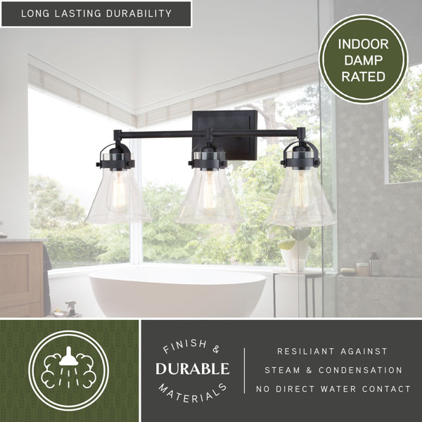 Mason Light Farmhouse Black Bathroom Vanity Fixture Clear Glass, 3 Lights