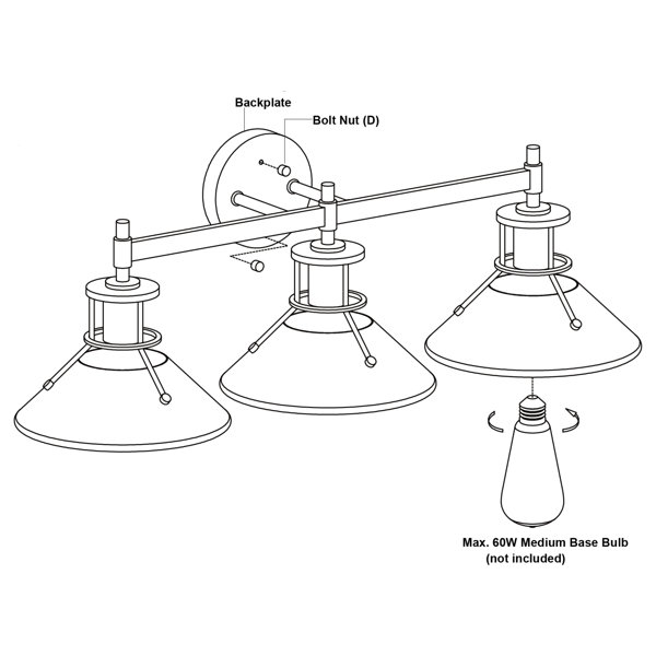 Uses 3 x 60 watt E26 medium base bulbs (not included); LED compatible