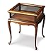 Selected hardwoods and choice cherry veneers. Cherry veneer on display surface and aprons. Glass sides and hinged glass framed top.