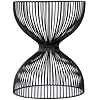 The open hourglass figure of this Nicholas Iron outdoor table adds dimension and texture to your outdoor oasis. The open spaces between the iron wire allow for a bright and airy design. Features: - Material: Metal - Finish: Black - Made of 100% iron - Iron Frame with an extra coating of polyester powder coating for protection from outdoor elements - Shape of the table is round - Metal wires make this a lightweight table that's easy for moving around - Skillfully crafted by factory metalsmiths with over 50 years’ experience in creating extraordinary and brilliantly designed metal pieces. - Ideal for use as an outdoor side table, end table, plant stand or accent table - Industrial style - To clean, spray with water and wipe clean with a cloth - Photo may slightly differ from actual item in terms of color/finish due to the lighting during photo shoot or the monitor's display. - The color is black - Item arrives set up Specifications: - Assembly Required: No - Product Dimensions: 14.25"W x 14.25"D x 17.75"H - Product Weight: 12 lb - Weight Capacity: 44 lb - Material: Iron - Color/Finish: Metalworks