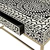 This beautiful writing desk is a harmonious blend of vintage and modern design. With an open, airy satin gold base and convenient storage drawer, this desk will be the centerpiece of an office, living space, or bedroom. Expertly crafted from mango Wood solids and engineered Wood on a hand forged iron base, it features an alluring bone inlay botanical motif dramatically framed within a black resin background. Features: - Transitional - Black and White Bone Inlay - Black Bone Finish - 1 drawer - Gold Finished base - Hand Crafted Specifications: - Assembly Required: No - Product Dimensions: 36"W x 19"D x 30.25"H - Product Weight: 46 lb - Weight Capacity: 110 lb - Material: Bone, MDF, Resin, Iron, Mango Solids - Color/Finish: Black Bone Inlay