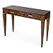 With gorgeous square tapered legs and gold detailing, this mid-century style design has an added modern flair with its matching gold hardware and its luxurious burl finish. Due to the natural characteristics of burl wood grain, no two pieces will be alike, giving you a piece that feels custom-made for your home. Features: - Color is a medium brown - Decorative gold dry brushes on wood trim, legs, and hardware - Crafted with a Poplar solid frame with burl veneer top and drawer fronts over engineered wood - This piece features veneer work and engineered wood substrates. The wood veneer is used for a smooth and consistent color tone, while the engineered wood beneath it provides strength and structural longevity. - Rectangular shape with tapered feet - Item dimensions are 45"W x 14"D x 31"H and item weight is 40.1 lbs - Features two drawers with half mortise joint construction and wood slides - Drawers each measure19.8"W x 9"D x 3.9"H - Width between console legs is 41.45"W x 10.45"D x 25.5"H - Leg dimensions are 1"W at base and 2.5" at top with 10.45"D between front and back legs - Item requires partial assembly of legs to top using provided hardware - Item weight capacity is 120 LBS - Ideal for use as a console table in a entryway or hallway or sofa table behind a sofa - Wipe clean with a dry cloth and dust regularly. Do not use harsh chemical cleaners that can damage the wood. - Wood has inherent disparities in color and grain pattern. Variations in shade and markings are normal and can be expected with the natural materials used in the construction of this product. Specifications: - Assembly Required: Yes - Product Dimensions: 45"W x 14"D x 31"H - Product Weight: 40 lb - Weight Capacity: 120 lb - Material: Poplar Wood, Mappa Burl Veneer, MDF - Color/Finish: Traditional Burl - Number of Drawers: 2