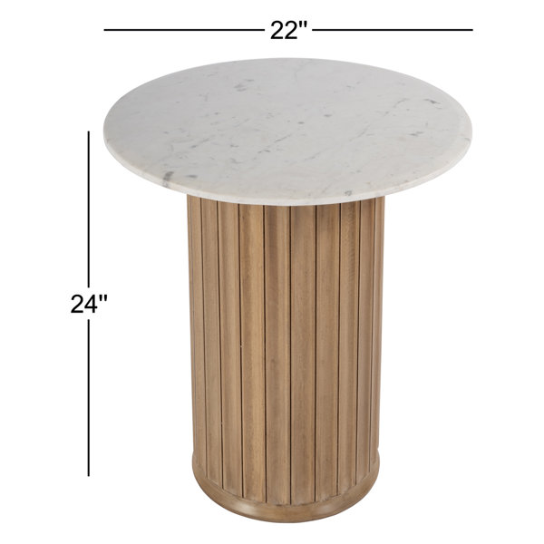 Elevate your living space with this exquisite Specialty Company Saig side table, where the natural beauty of marble meets the warm, earthy tones of solid mango wood. The round white and beige marble top exudes a timeless elegance, perfectly balanced by the pedestal base in a light brown finish. Standing at 24 inches high, this table is a stunning blend of classic and contemporary design, making it a versatile piece that adds both style and function to your home.