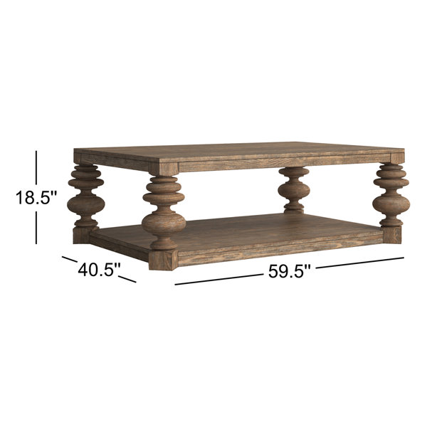 The 59.5-inch Meliah rectangular cocktail table provides a striking centerpiece to any living area, as well as plenty of surface area for both relaxing and entertaining. Four dramatic columns support the table, representing an exaggerated version of 18th-century neoclassical columns, bringing historical style into the 21st century with contemporary boldness. Wire-brushed pine is hand-glazed in a warm almond-toned finish, allowing the beautiful wood grain a chance to shine, and representing a balance of old-world formality with laidback modern charm.