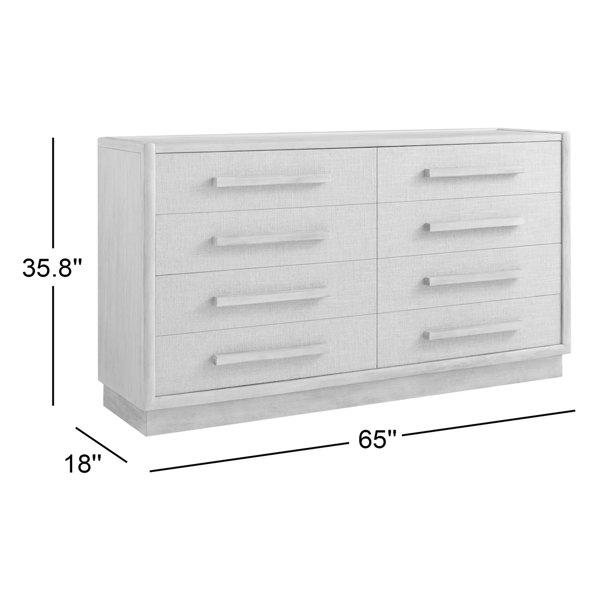 Inspired by the straightforward, clean lines of mid-century design, the eight drawers pay homage to the solidity and presence of classic architecture. Combining light wood with woven fabric accents in an organic palette of warm neutrals, this dresser delivers contemporary simplicity with ample storage space.