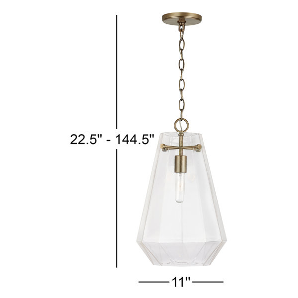 The crystal-inspired prismatic shape of this single glass pendant sparkles and creates a dramatic design moment without being too visually dominant in space.