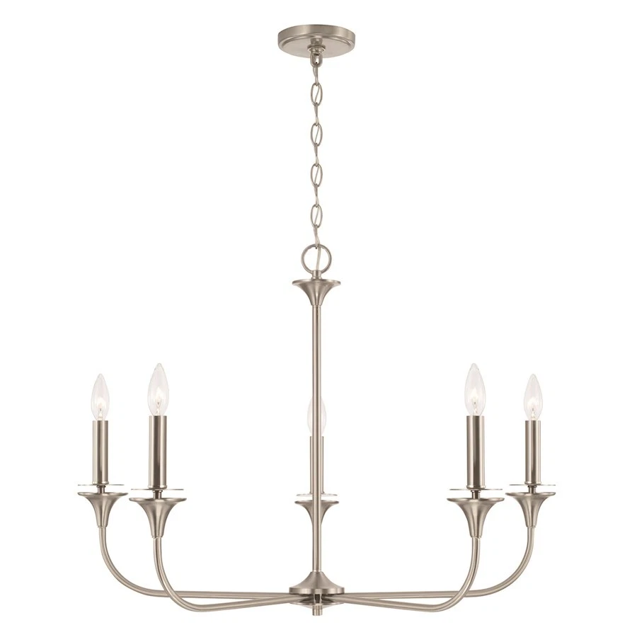 HomePlace Lighting Presley 5 Light Chandelier, Brushed Nickel - 448951BN