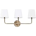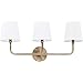 List unavailable.Capital Lighting 119331AD-674 Dawson Decorative White Fabric Stay-Straight Shade Bath Vanity Wall Mount, 3-Light 180 Total Watts, 12" H x 26" W, Aged Brass