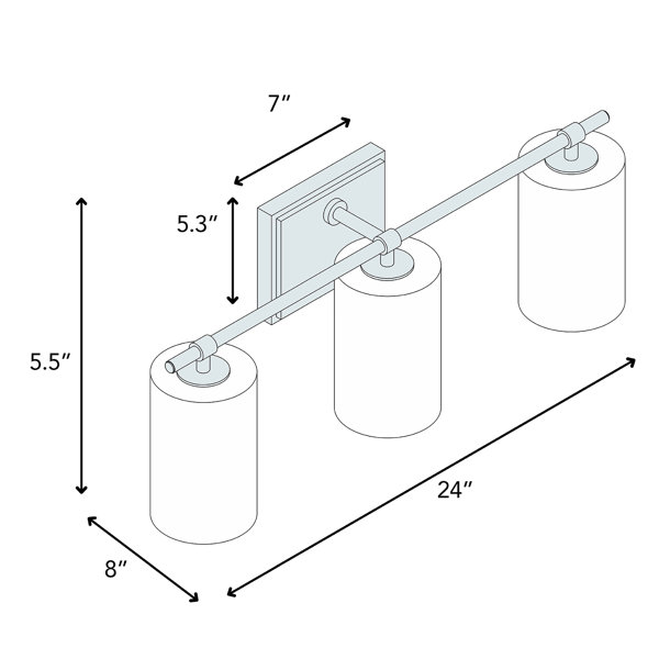 At 24" wide, this 3-light vanity light adds just the right amount of vintage style to your powder room or bathroom. It's made from metal in a black matte finish with a rectangular backplate, pipe-inspired arm, and bowl-shaped shades. These shades surround a 60W bulb (each sold separately). We love that you can mount this vanity light up or down depending on your preference. Plus, it's compatible with dimmer switches. It's also rated for damp locations and safe to use in bathrooms with steamy showers.