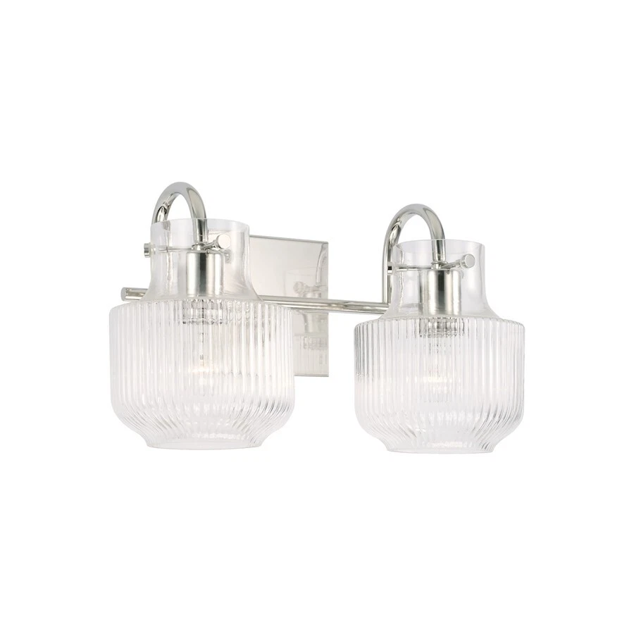 Capital Lighting Nyla 2 Light Vanity, Polished Nickel/Clear Fluted - 145121PN