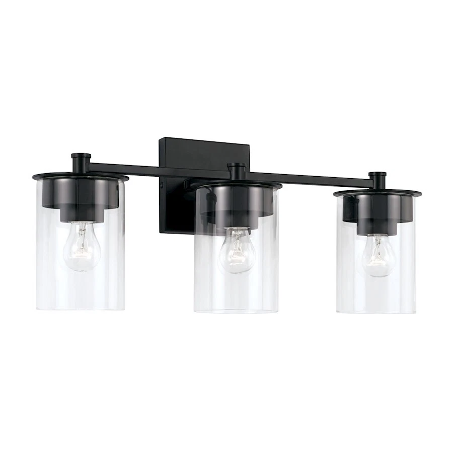 Capital Lighting Mason 3 Light Vanity, Matte Black/Clear - 146831MB-532