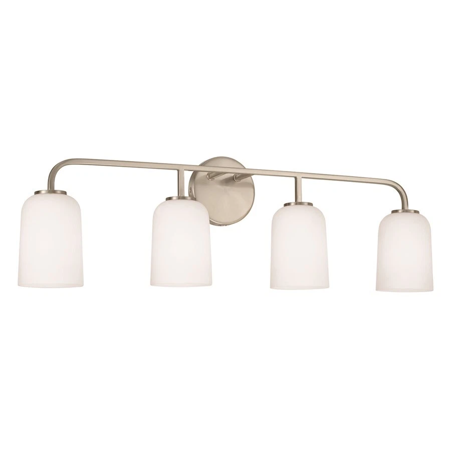 HomePlace Lighting Lawson 4 Light Vanity, Brushed Nickel/White - 148841BN-542