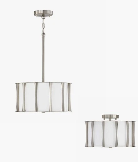 Capital Lighting Bodie 3 Light Semi Flush Mount, Nickel/White Fabric - 244631BN