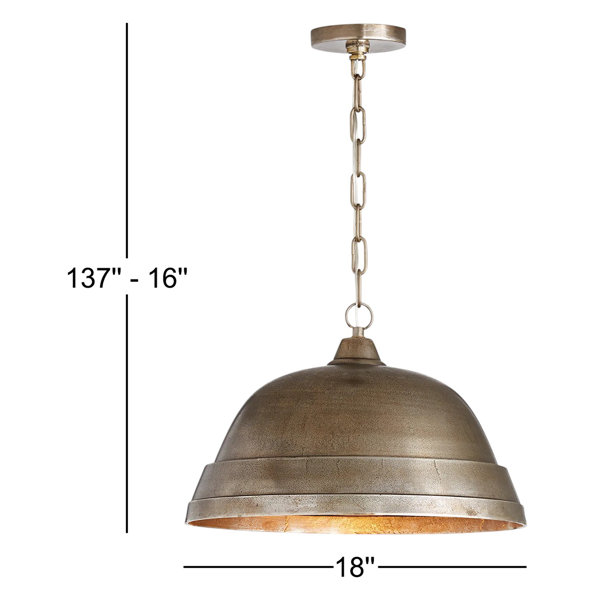 This 1-light pendant provides handy illumination over your dining table or kitchen island. It's crafted from distressed metal with subtle variations in tint and tone. The dome shade directs the glow downward from a single 100W max bulb (sold separately). And it hangs from a height-adjustable chain, which attaches to a canopy that's compatible with sloped ceilings. This pendant light also works with dimmer switches, so you're able to control the level of brightness in your space.